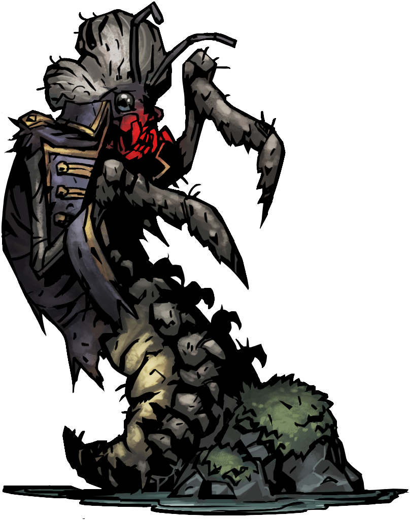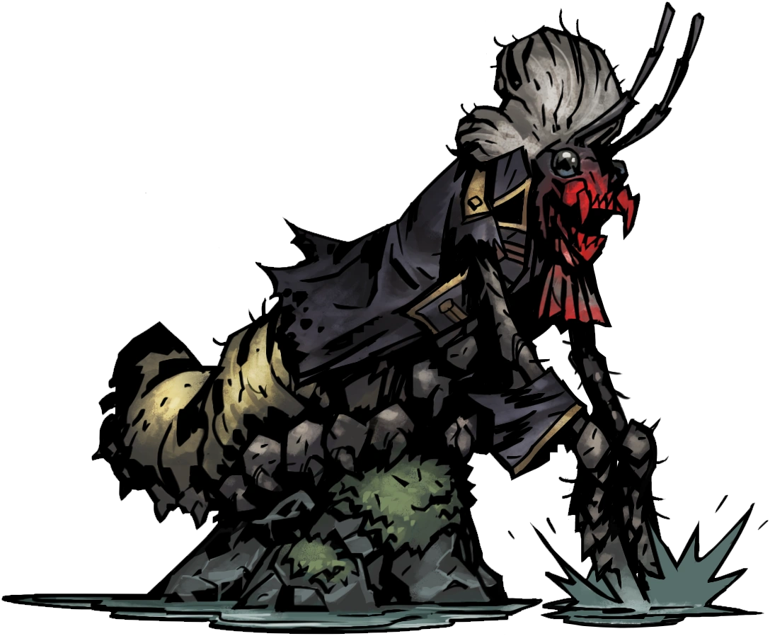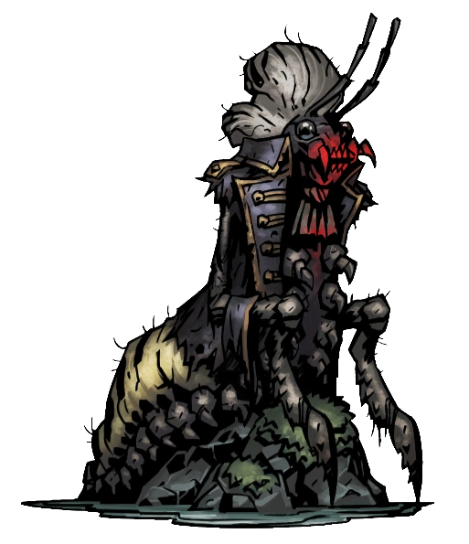 While their fellow Bloodsuckers maintain a humanoid form, Chevaliers stand out for being far more insectoid, with their wigs and coats being the only thing indicating that they were once human. As their name indicates, Chevaliers are likely to have held high ranks of knighthood in their past; after their transformation, this high rank translates to great combat prowess. They also lack The Thirst and thus cannot spread the Crimson Curse, but their raw damage and resilience make them a great threat regardless.