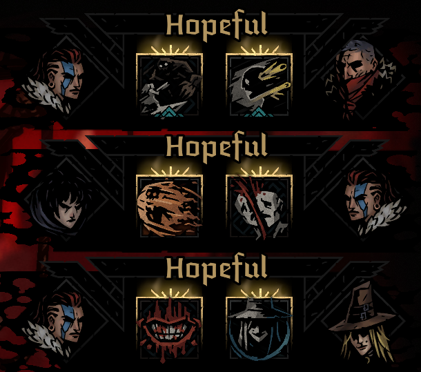 Relationships or Affinity System is a new mechanic introduced in Darkest Dungeon 2. Throughout the road, the combat and The Inn the heroes will be able to form relationships with each other which will either increase their combat effectiveness or greatly reduce it. Keeping the relationships between the team positive is essential for the victory of the expedition.