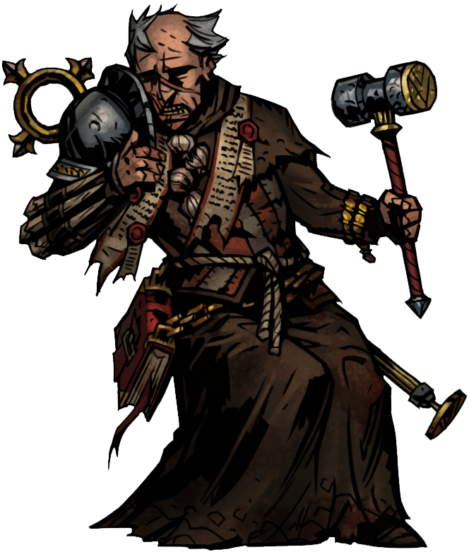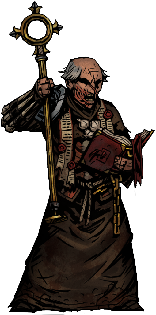 A towering and domineering force of seething-zealous rage and terrible intent; the Fanatic is a monk who has gone rogue from the Church to hunt down and slaughter anyone and anything affected by the Crimson Curse anywhere it can be found. His heavily scarred face reveals a storied past of brutal and consequential encounters with the mutated inhabitants of the Courtyard, from which he has spilled unimaginable amounts of heathen blood. At his disposal are several iconic weapons and tools for slaying vampires; stakes, garlic, crosses and prayers. However, his most dangerous weapon is his unwavering conviction in the righteousness of his cause and the zealous fervor of which he pursues it, even if it means putting himself directly in harm's way. At times, the line between fervor and the wish for self-destruction can become precariously blurred.