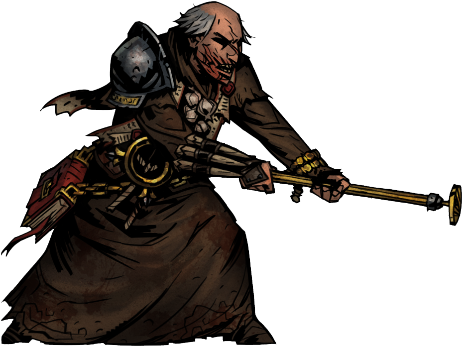 Upon entering battle, the Fanatic will always surprise the party. If you decide to run away from the Fanatic, he will appear in the next encounter, fulfilling his promise to hunt "the Cursed" down. He will spawn in the two back ranks with his stake and pyre in the front two rows. He has three actions per round, and attacks with various skills that can cause debuffs, bleed, stuns, and horrors, on top of moving him around the battlefield.